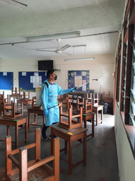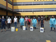 马华马六甲市区区会先锋队联合马华志工团马六甲州团在复课前为各学校进行消毒工作。参与工作者包括梁邵菖、陈炜建、李佳胜、刘进鸿以及高启尧。